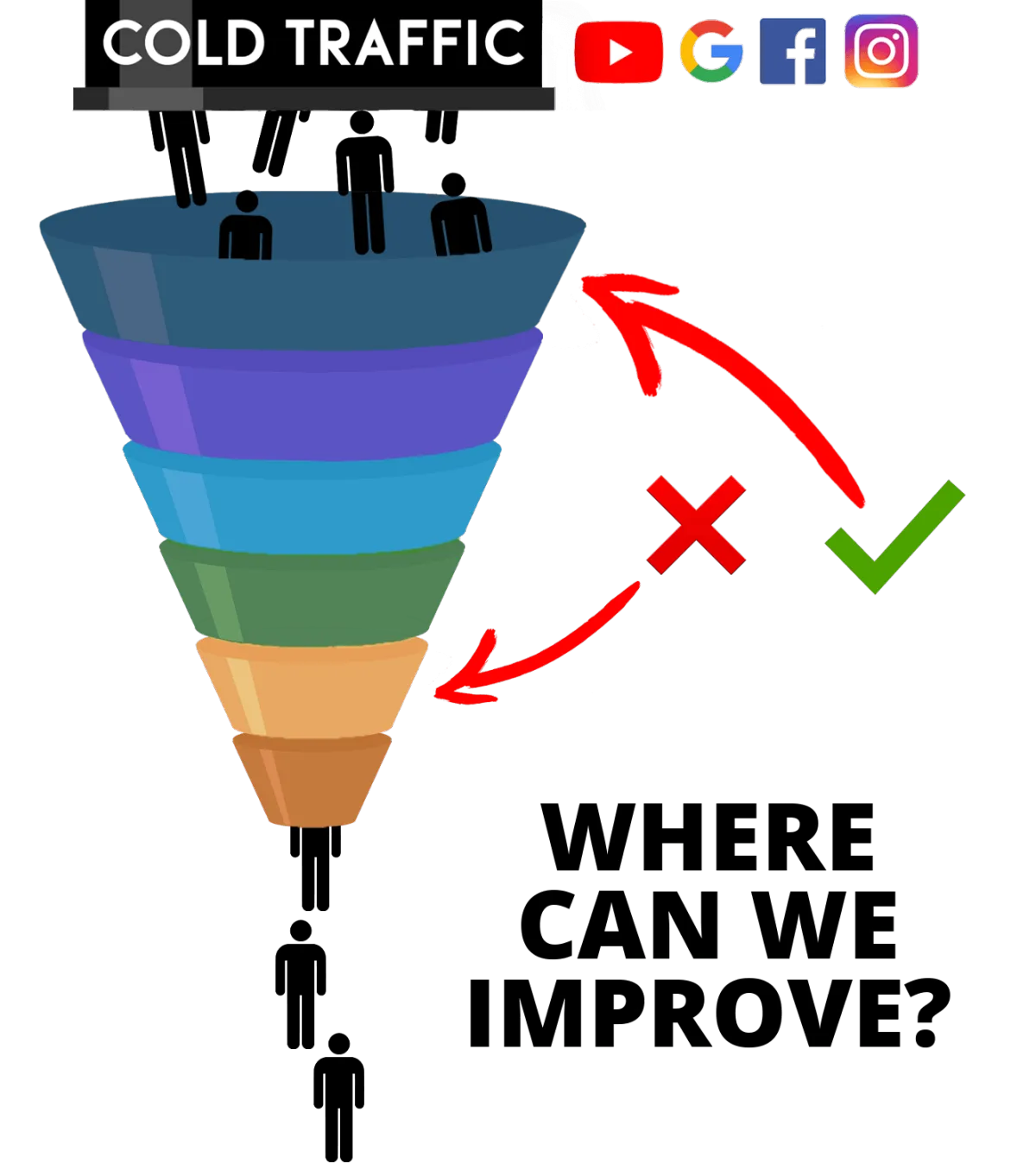 Om du er klar over det eller ej, er din virksomhed en tragt. Tragter er komplekse størrelser med mange bevægelige dele. Ud fra min erfaring har 90% af virksomhederne ÉT nøgletrin i deres tragt, som i høj grad holder dem tilbage. Vores opgave er at hjælpe dig med at identificere det område.